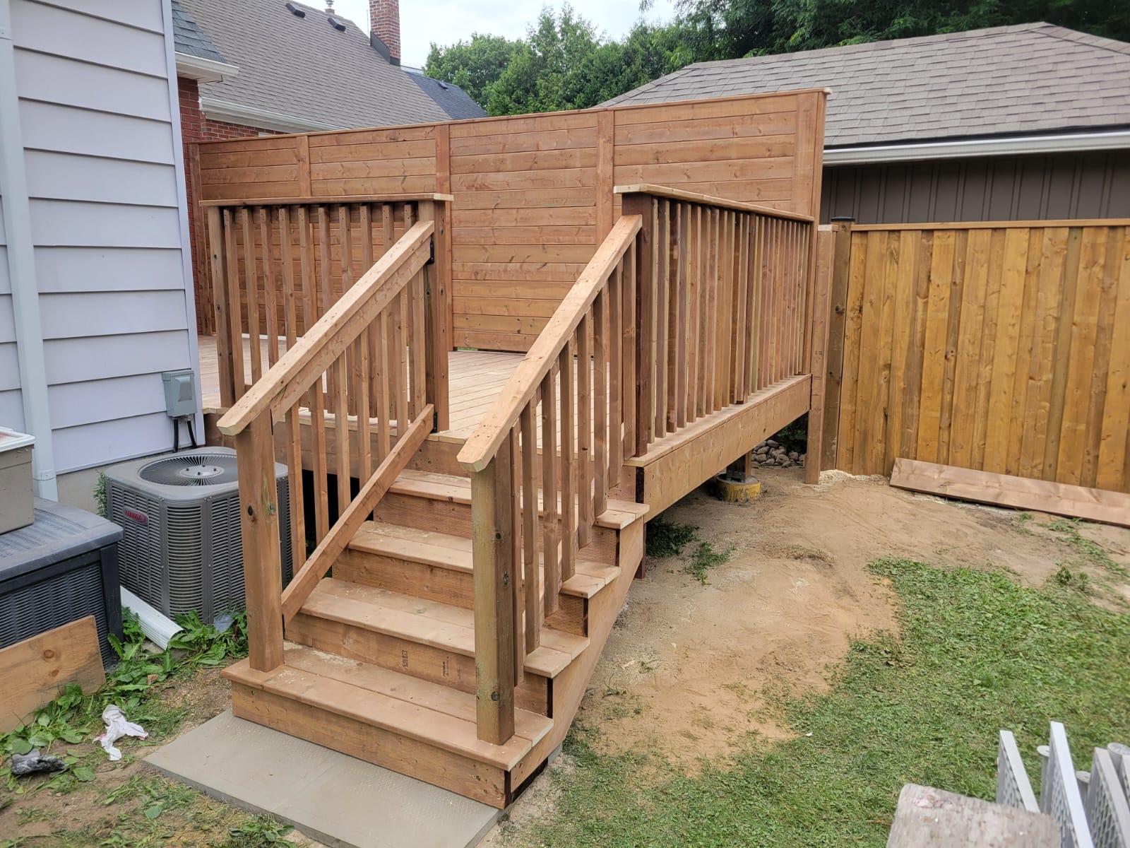 Yes. Exterior stairs and railings must meet specific height, spacing, and structural requirements under Ontario building standards. We build using strict code-aware practices to ensure total safety and reliability.